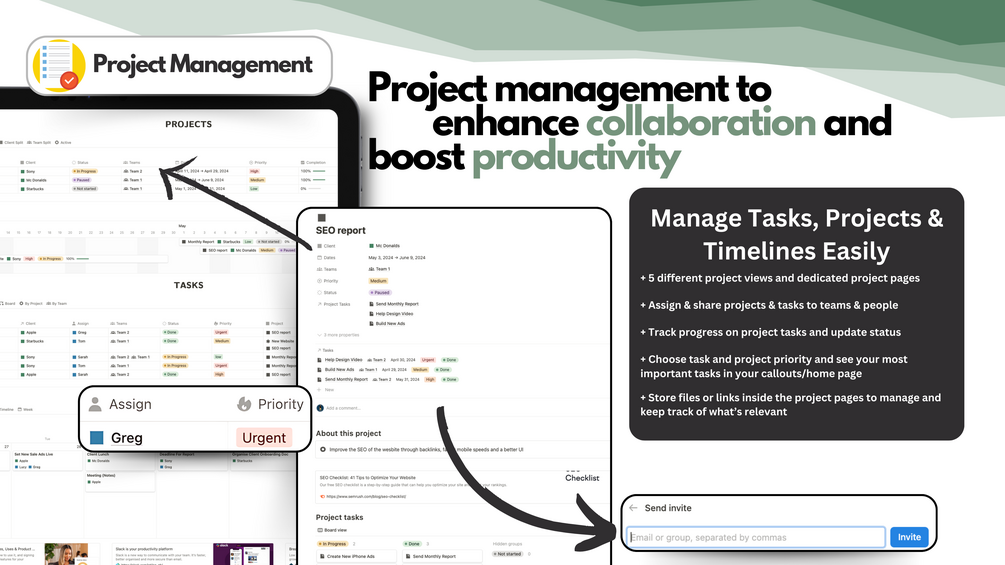 🔹 Projects – Plan, delegate, and collaborate effortlessly to keep projects on track.