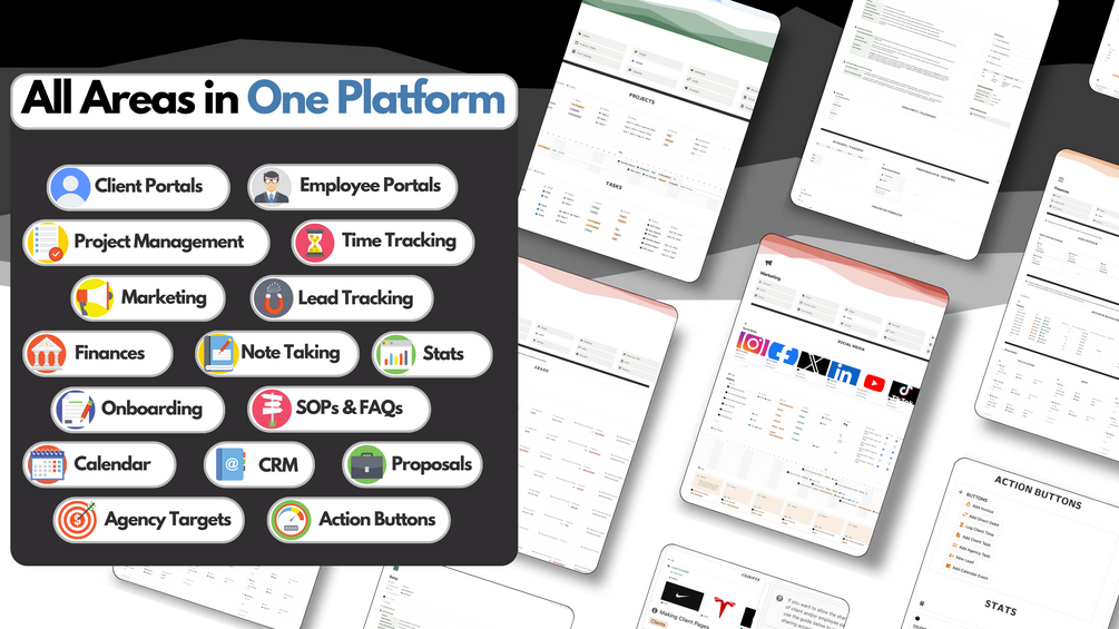 AGENCY OS isn't just a Notion template, it's a replacement for expensive monthly subscription software. It gives you all the benefits of having a Notion system for your agency without needing to spend time learning how to create a dashboard good enough to properly manage your business. -