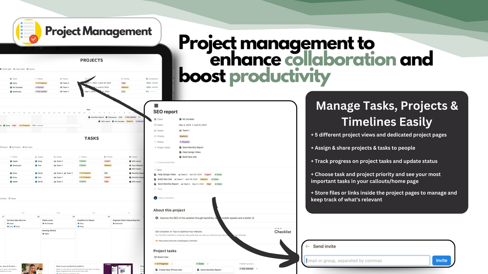 ✅ Projects & Tasks: Create and manage client tasks and projects with ease. Prioritize tasks, set deadlines, and delegate work efficiently.