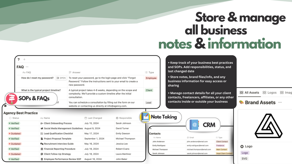 ℹ️ Resources & WIKI: Centralize business best practices, forms, and information in one convenient location. Explore the 17-page template WIKI for useful tutorials and integration tips to optimize your workflow.