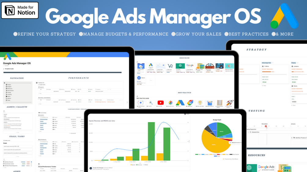 Duplicate the Google Ads Manager OS for each client account and store the trackers in each of the relevant Client pages in the Freelance OS template.