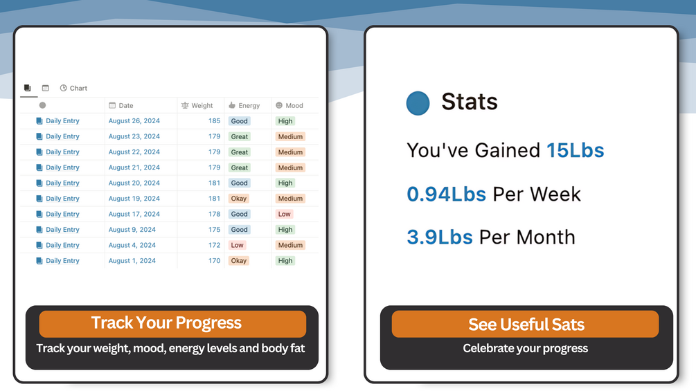 Gain insights into your muscle-building journey. Monitor progress, analyze habits, and unveil key data that drives your transformation. Includes a complimentary graph with instructions.