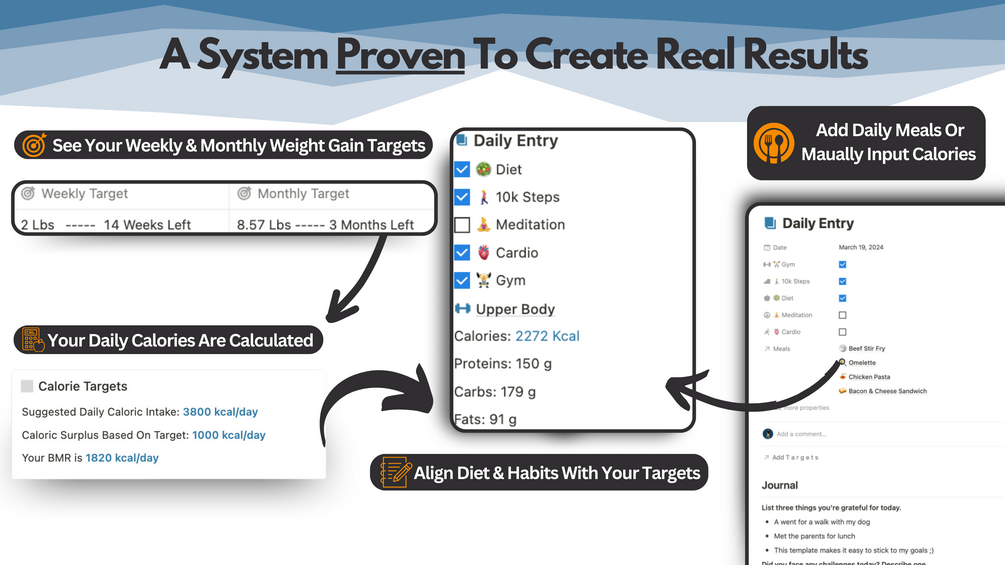 Supercharge your weight loss with the most advanced all-in-one Notion system to help you track progress, lose fat, build muscle, create healthy habits, remove unhealthy habits, & get fit. Whether you're looking to hit your dream physique, skyrocket your fitness, or simplify your weight gain journey, Health 360Β integrates everything into a seamless, personalized command centre using Notion.